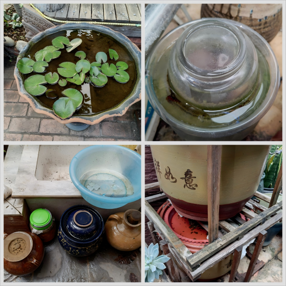 (三)天臺、陽臺及門前屋后積水管理。屋頂反墚、排水槽等應(yīng)定期疏通,避免堵塞積水。陽臺、天臺、庭院內(nèi)的花盆、泡沫箱、廢棄瓶罐等容器應(yīng)及時清理,閑置容器應(yīng)倒扣放置,儲水容器如水缸應(yīng)加蓋,廢棄容器徹底清除。竹筒、樹洞應(yīng)進行封堵或改造,蓮花池養(yǎng)魚防蚊。空調(diào)冷凝水應(yīng)及時排凈,廢棄輪胎在底部打孔或避免露天放置。下水井進行防蚊封堵,有條件的建議將明溝改為暗渠。
