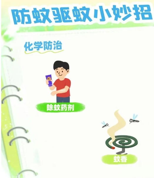 ▎對(duì)于居民家庭或賓館等居室內(nèi),可使用市售有合格證、登記證的氣霧劑、蚊香等衛(wèi)生殺蟲劑用品進(jìn)行防蚊滅蚊。